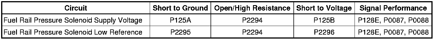 * The ECM detects an open or high resistance on one of the fuel pressure regulator 2 circuits for greater than 1 s.