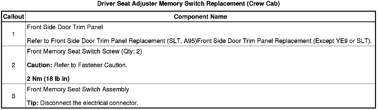 Driver Seat Adjuster Memory Switch Replacement (Crew Cab)