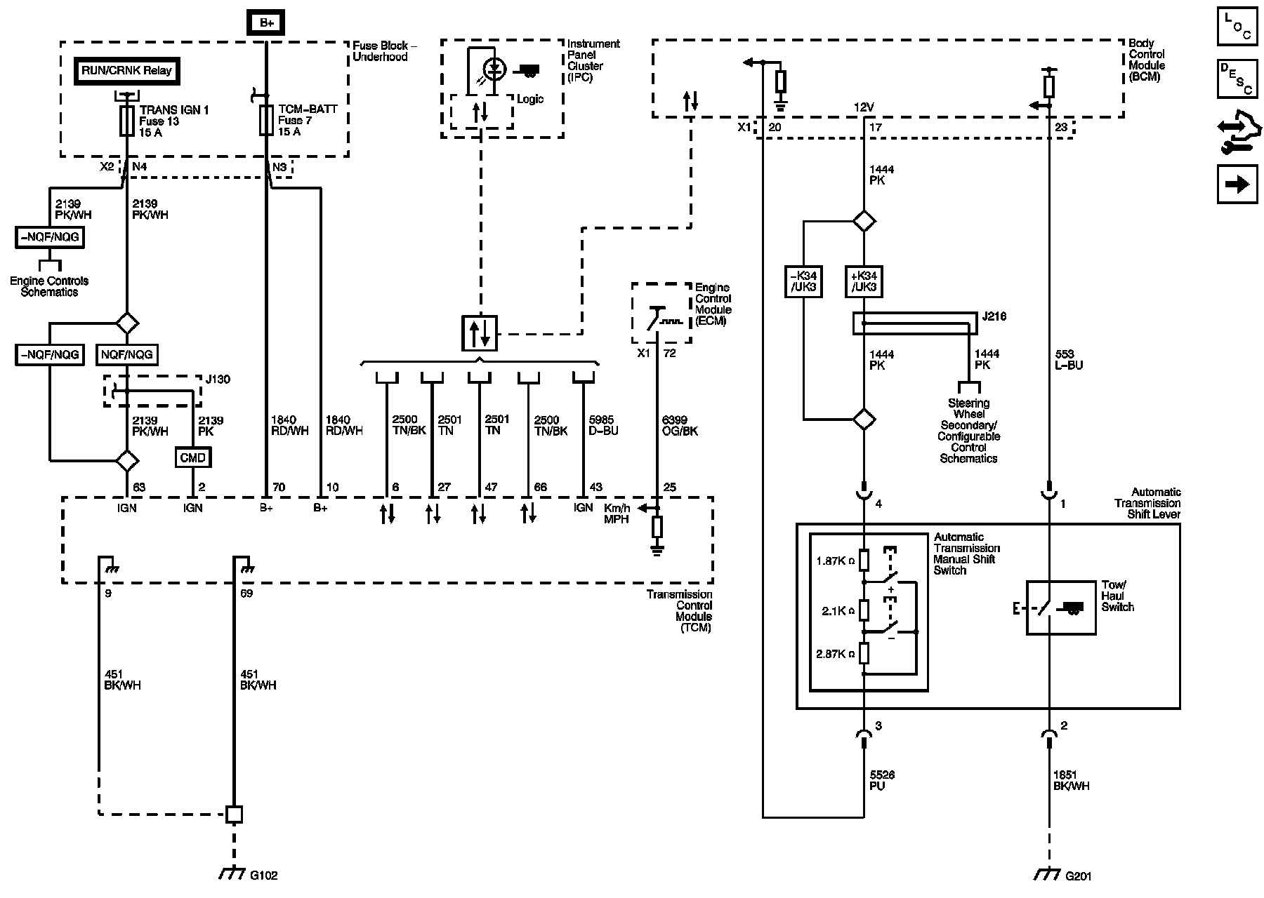 Module Power, Ground, Driver Shift Request Switch, Tow/Haul Switch, and Serial Data