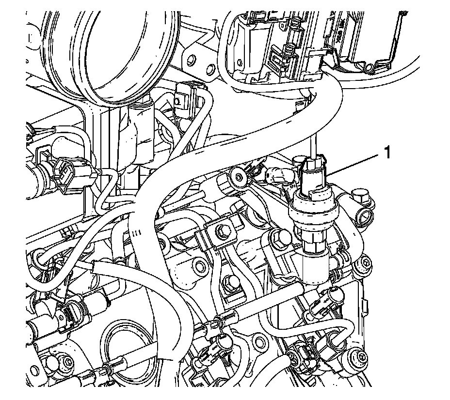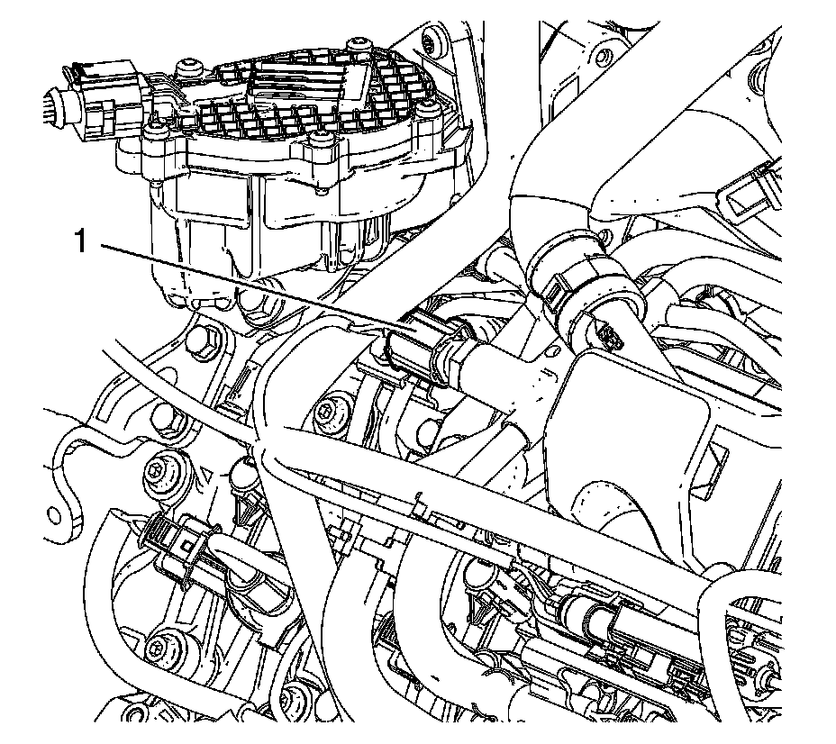 12. Connect the left side fuel rail fuel pressure sensor electrical connector (1).