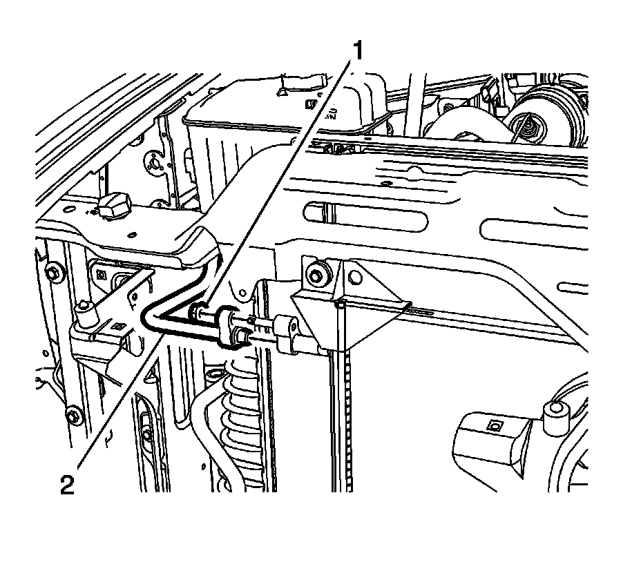 7. Install the radiator support. Access the bolts (1) from the rear of the upper radiator support. Refer to Radiator Support Replacement .