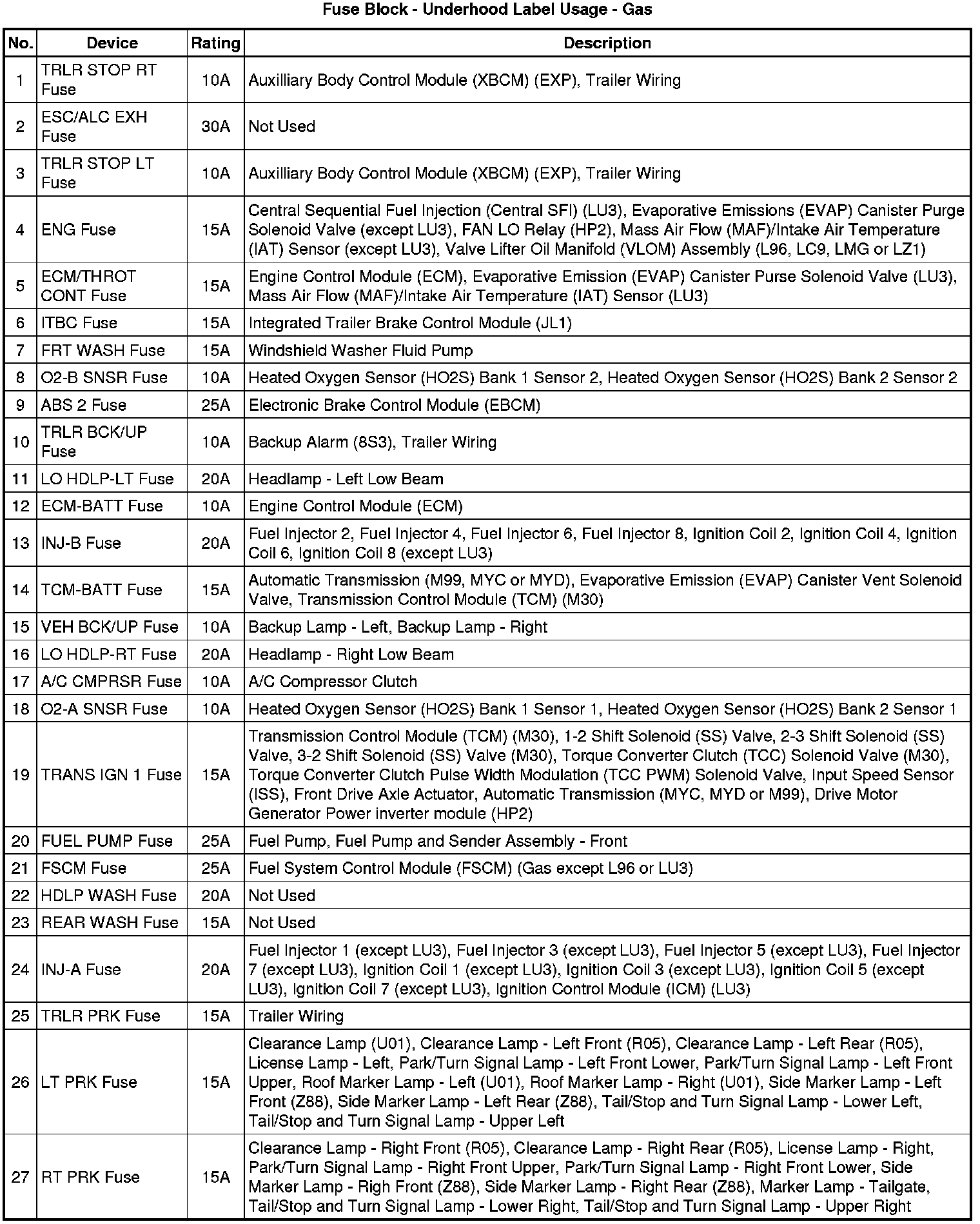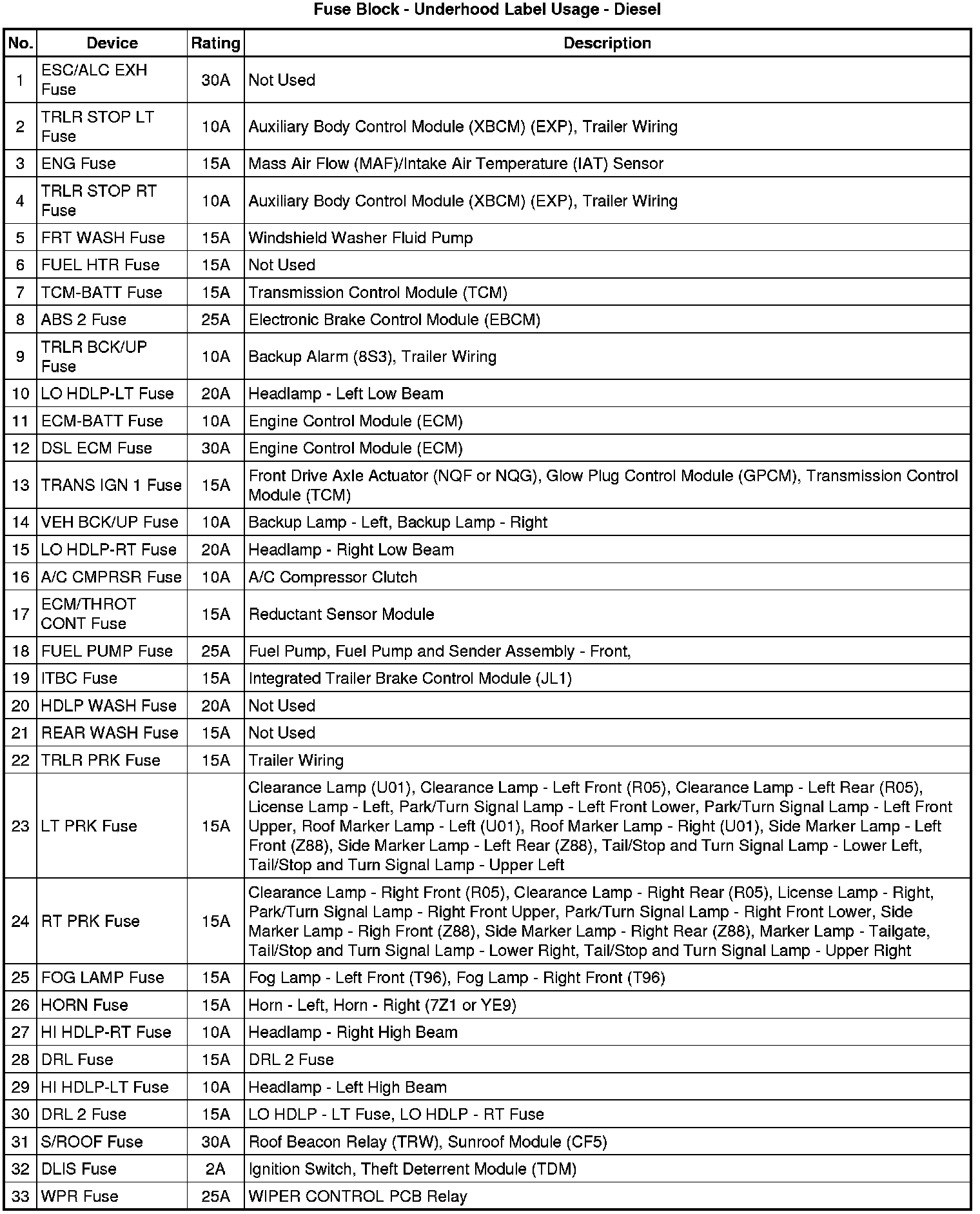 Fuse Block - Underhood Label
