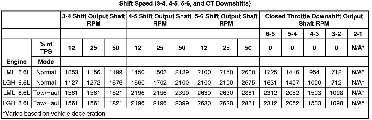 Shift Speed (3-4, 4-5, 5-6, and CT Downshifts)