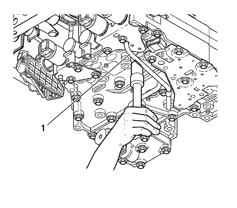 1. Remove the oil pan and transmission internal oil filter. Refer to Oil Pan Replacement Service and Repair.