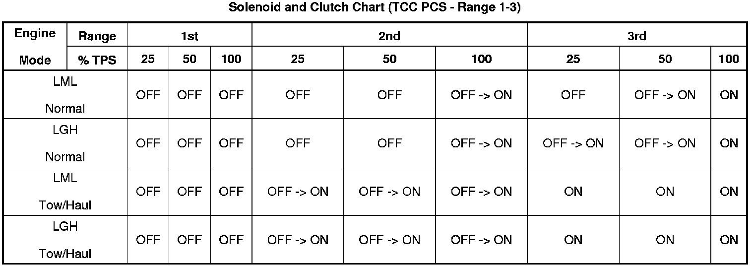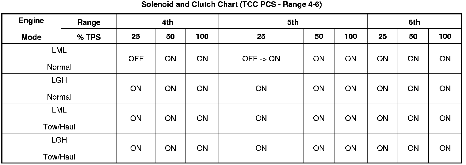 Solenoid and Clutch Chart (TCC PCS)