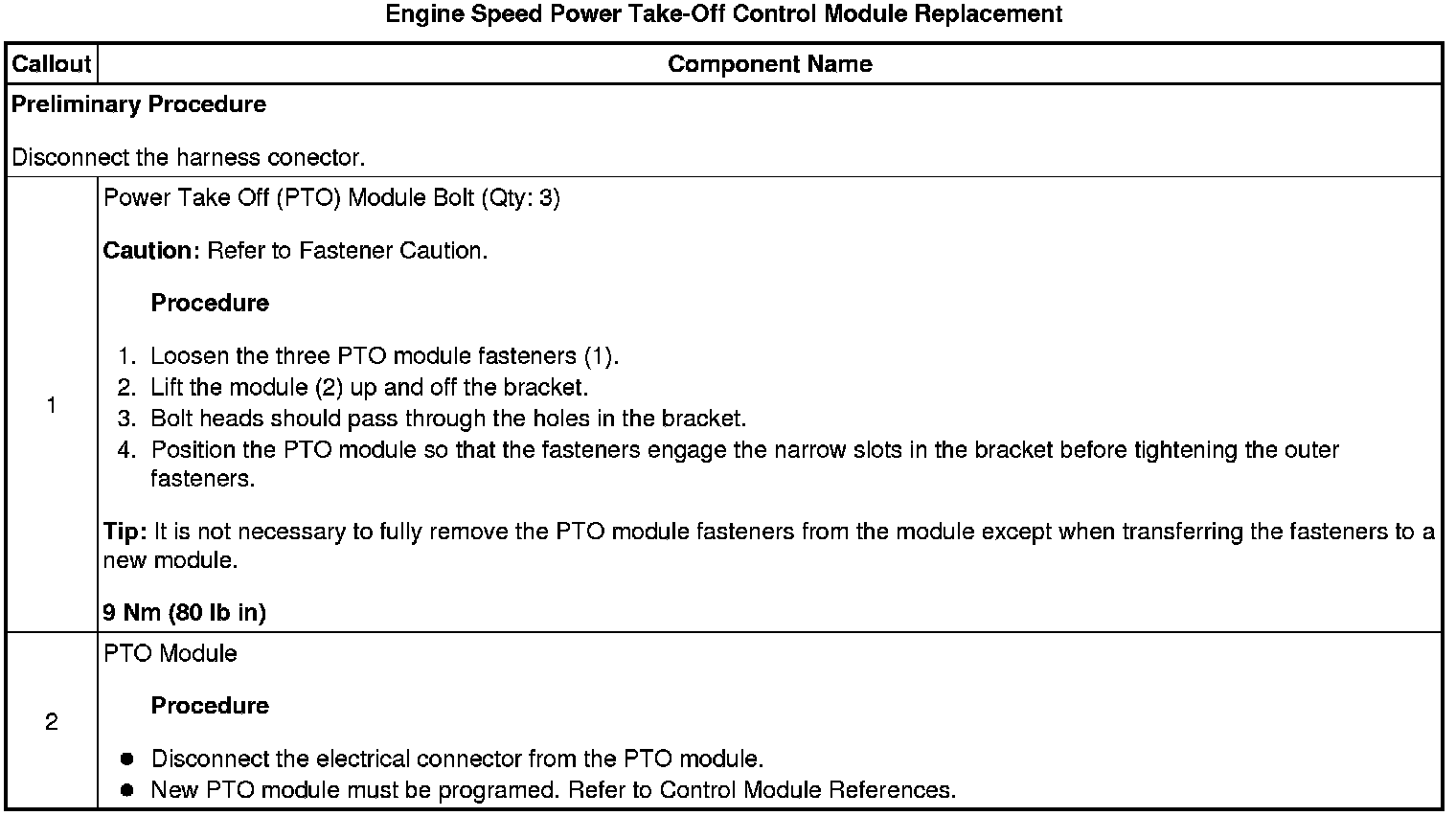 Engine Speed Power Take-Off Control Module Replacement