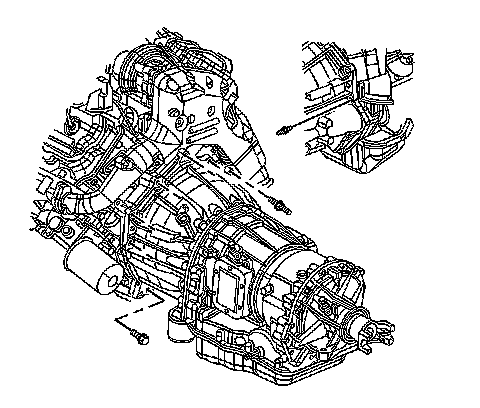 5. Remove the starter motor. Refer to Starter Replacement (Diesel) Service and RepairStarter Replacement (V6) Service and RepairStarter Replacement (V8) Service and Repair.