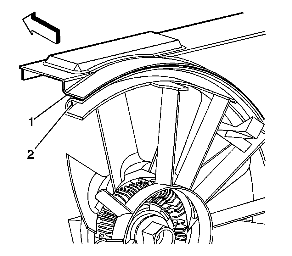 1. Remove the upper fan shroud. Refer to Engine Coolant Fan Upper Shroud Replacement (Diesel) Service and RepairEngine Coolant Fan Upper Shroud Replacement (Mechanical) Service and Repair