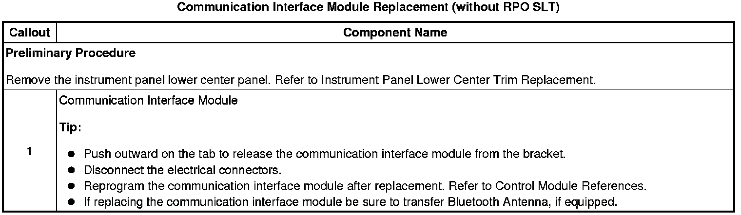 Communication Interface Module Replacement (without RPO SLT)