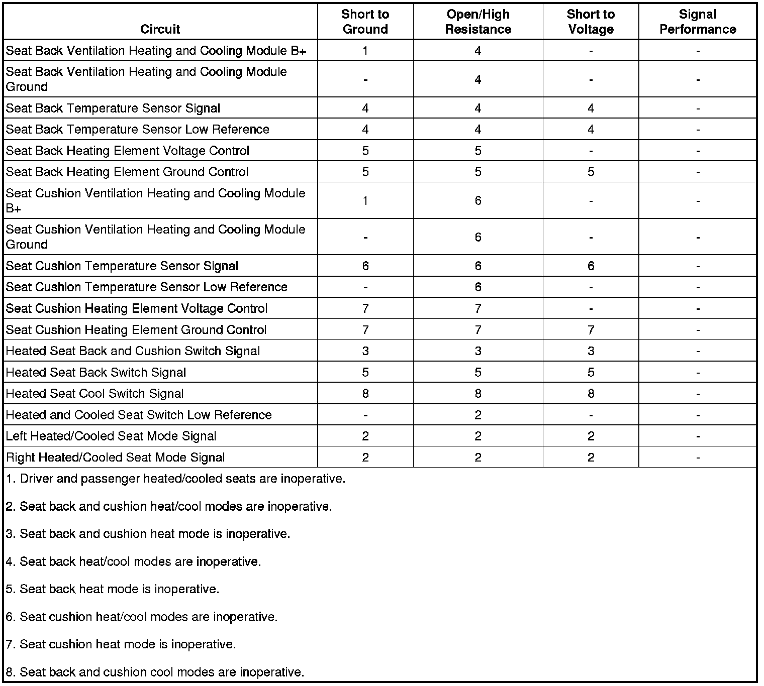 Heated and Cooled Seat Circuit Test