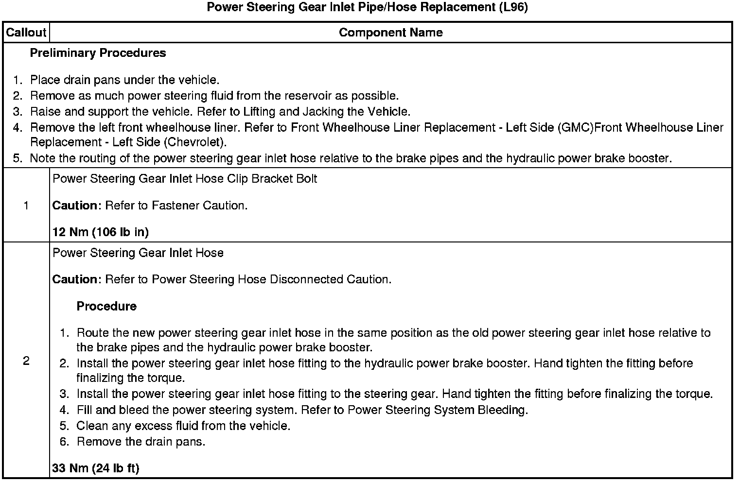 Power Steering Gear Inlet Pipe/Hose Replacement (L96)