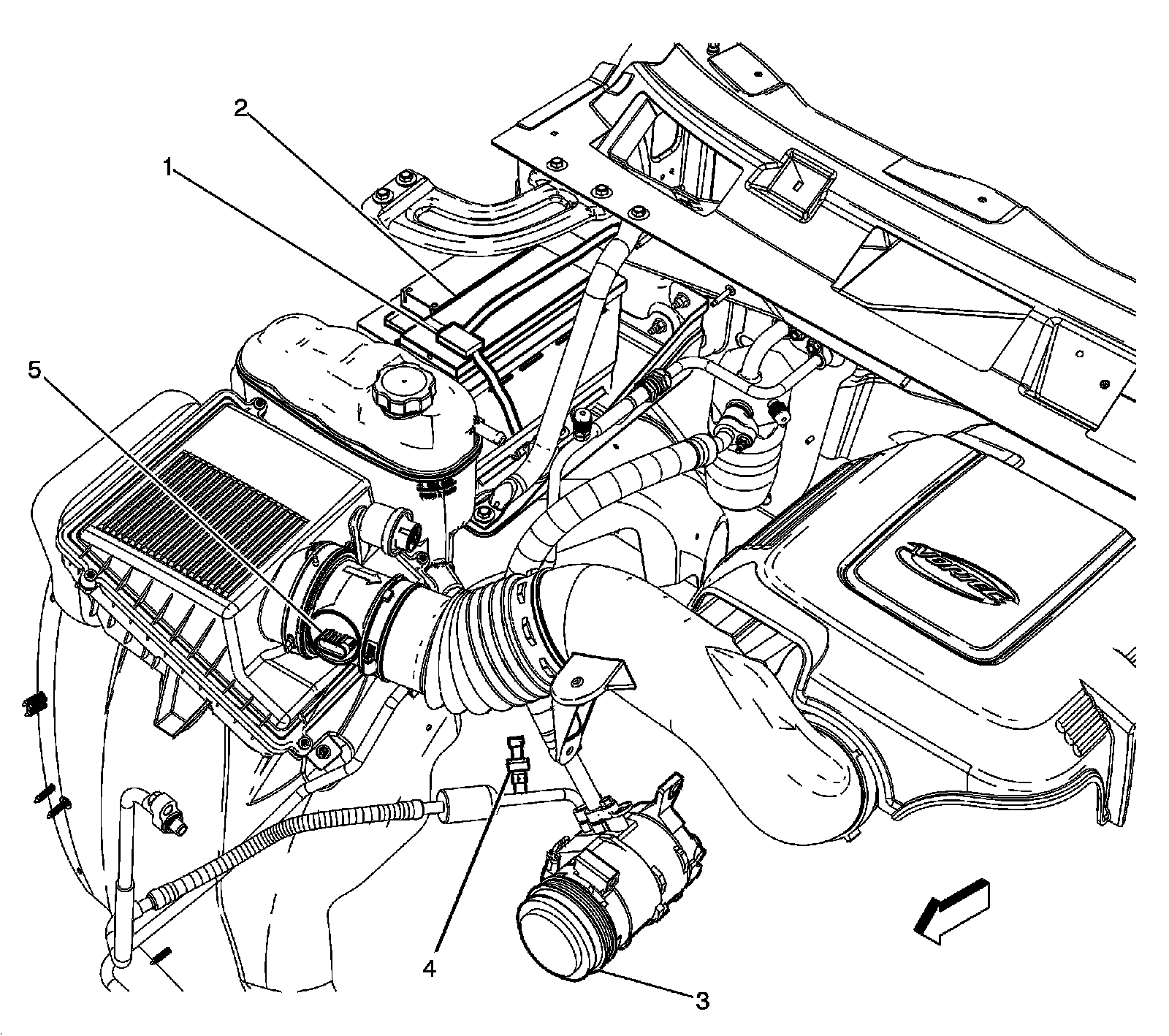 Right Rear of the Engine Compartment Components (4.8L, 5.3L, 6.0L or 6.2L except HP2)