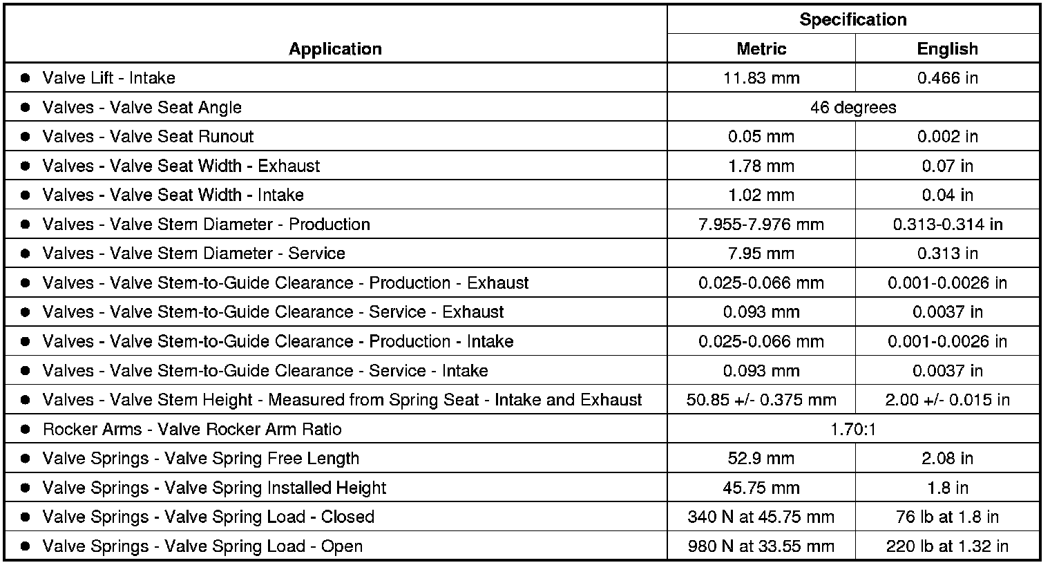 Engine Mechanical Specifications (RPO L96 VIN G)
