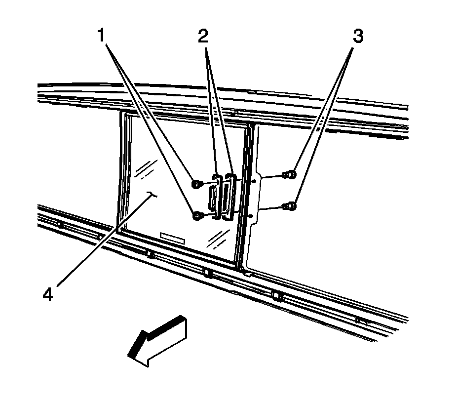Use a suitable tool to lift upward on the rear sliding window stops (1) to remove.