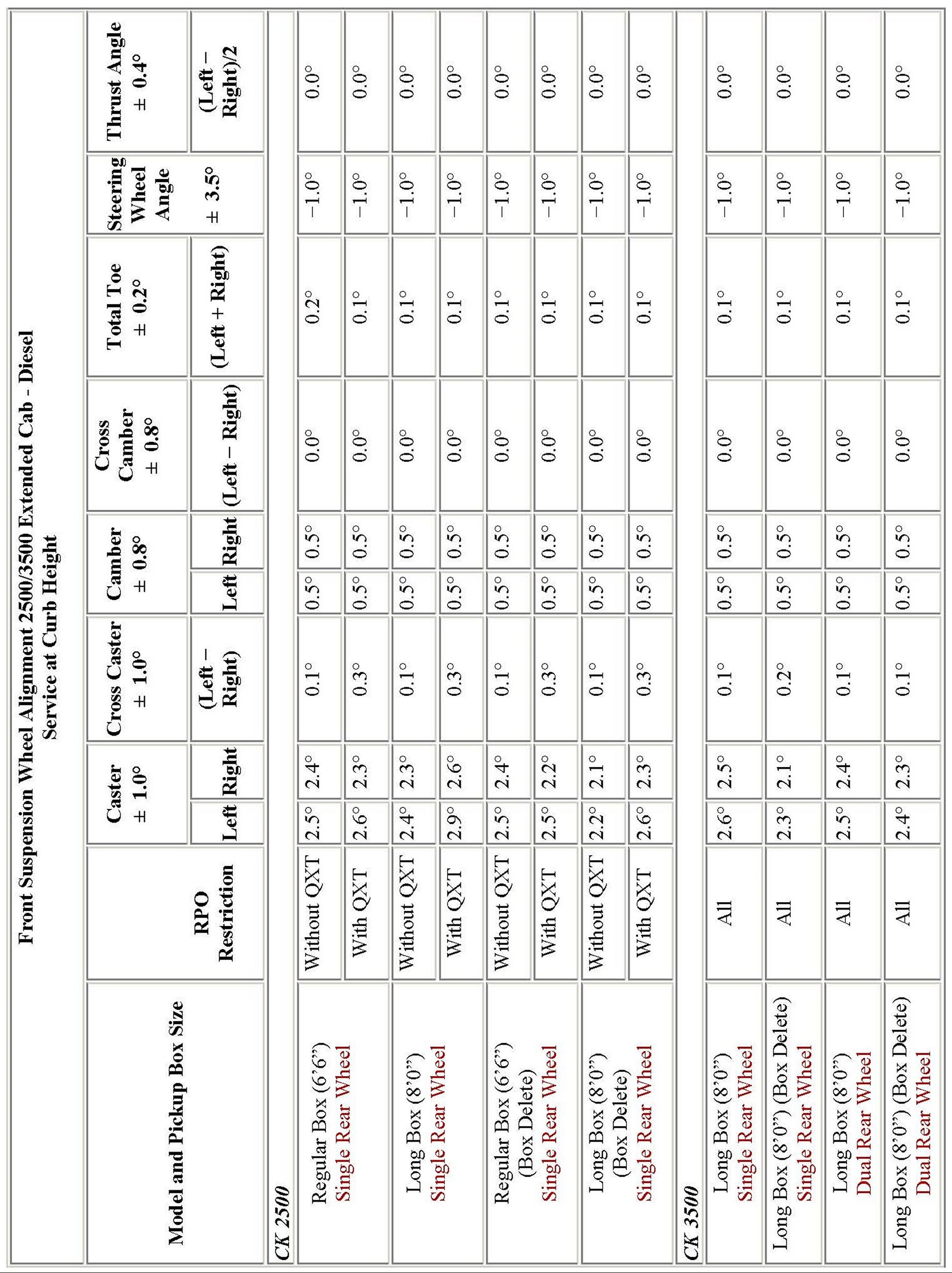 Wheel Alignment Specifications