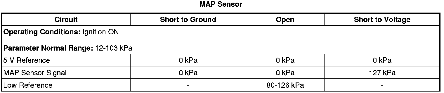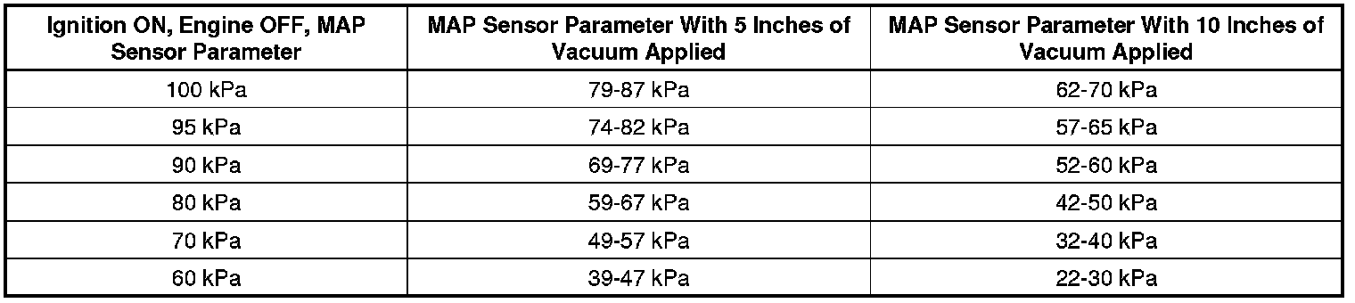 3. Use the observed MAP Sensor Scan Tool parameter that is closest to a value that is indicated in the first column.