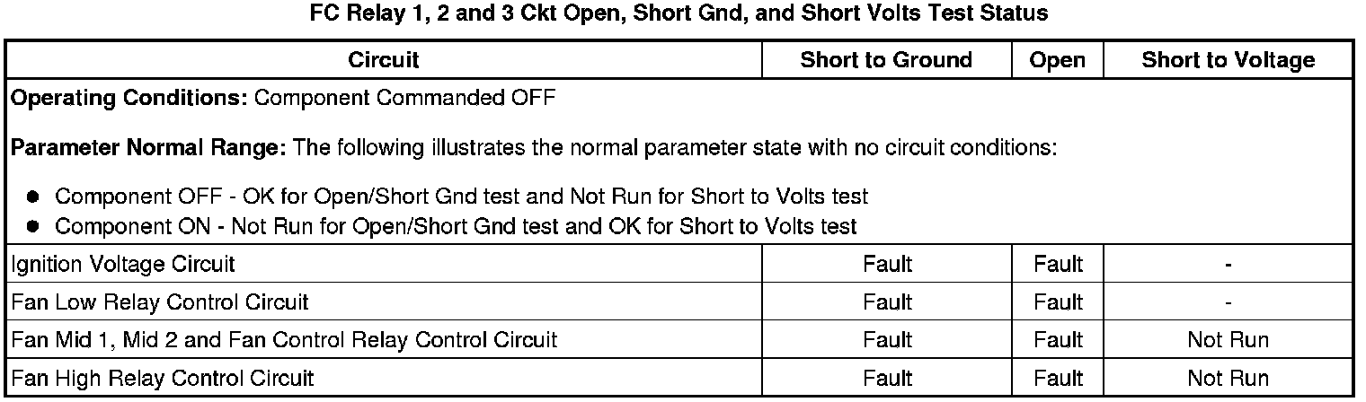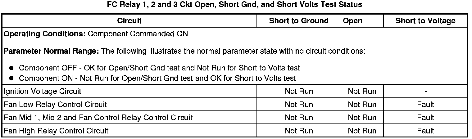 * FC Relay 3 Ckt Open, Short Gnd, and Short Volts Test Status