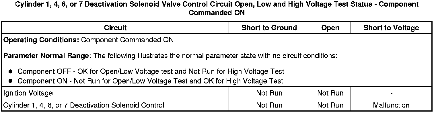 * Cyl. 1, 4, 6, or 7 Deact. Sol. CKT Open Test Status