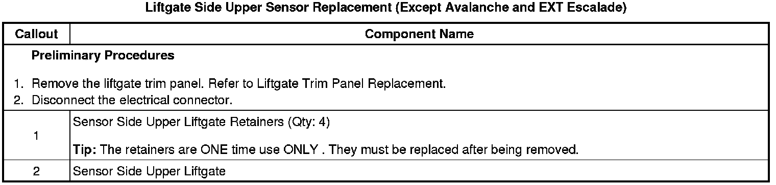 Liftgate Side Upper Sensor Replacement (Except Avalanche and EXT Escalade)