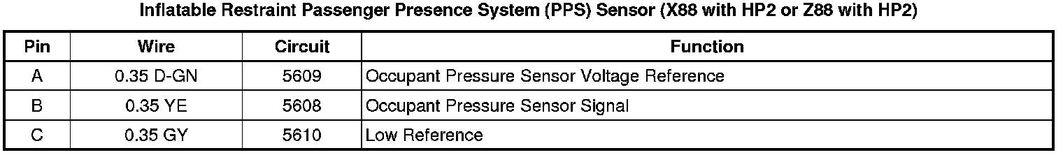 Inflatable Restraint Passenger Presence System (PPS) Sensor (X88 with HP2 or Z88 with HP2)
