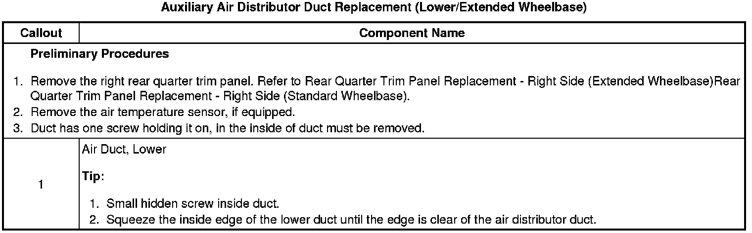 Auxiliary Air Distributor Duct Replacement (Lower/Extended Wheelbase)