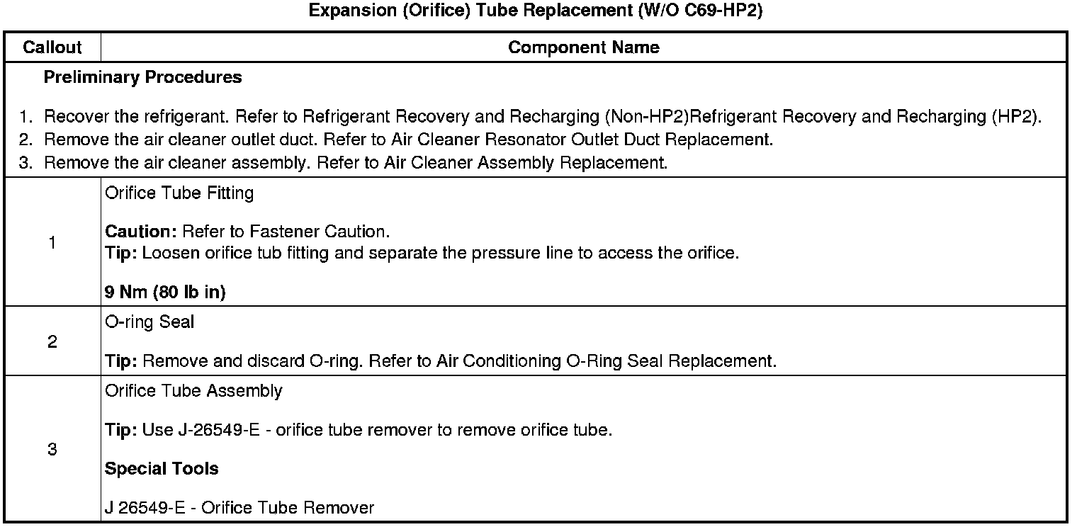 Expansion (Orifice) Tube Replacement (W/O C69-HP2)