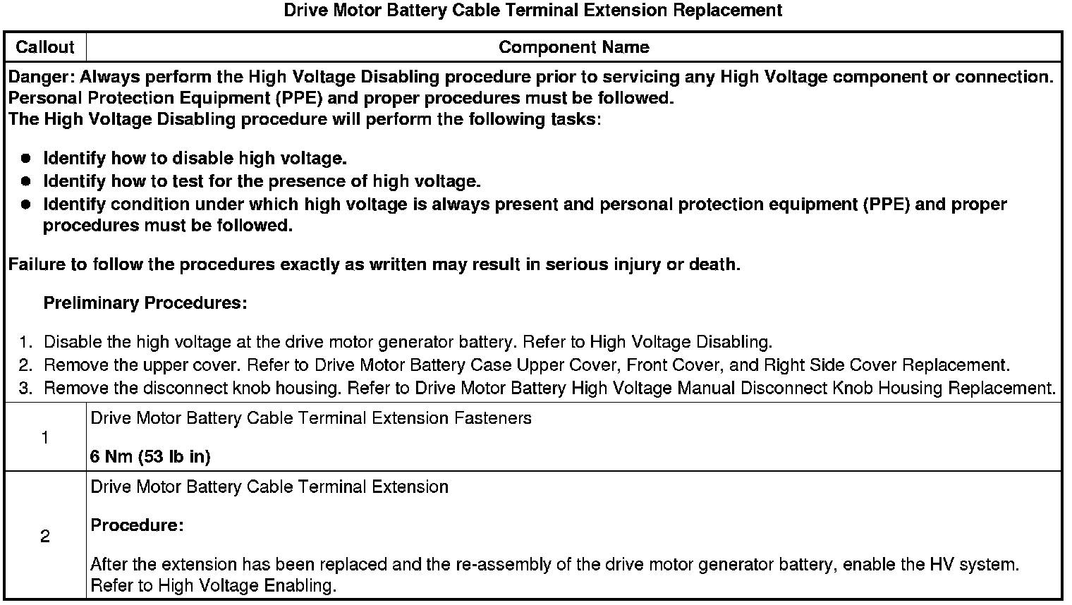 Drive Motor Battery Cable Terminal Extension Replacement