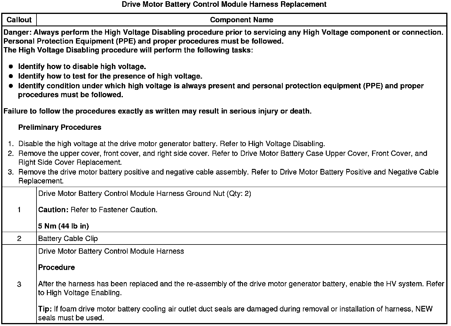 Drive Motor Battery Control Module Harness Replacement