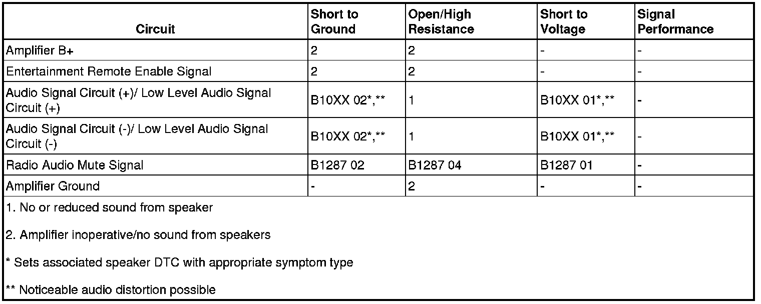 * When equipped with an amplifier, it is possible for some individual circuit faults to affect more than one speakers operation. Perform diagnostic tests in the sequence listed to avoid misdiagnosis.