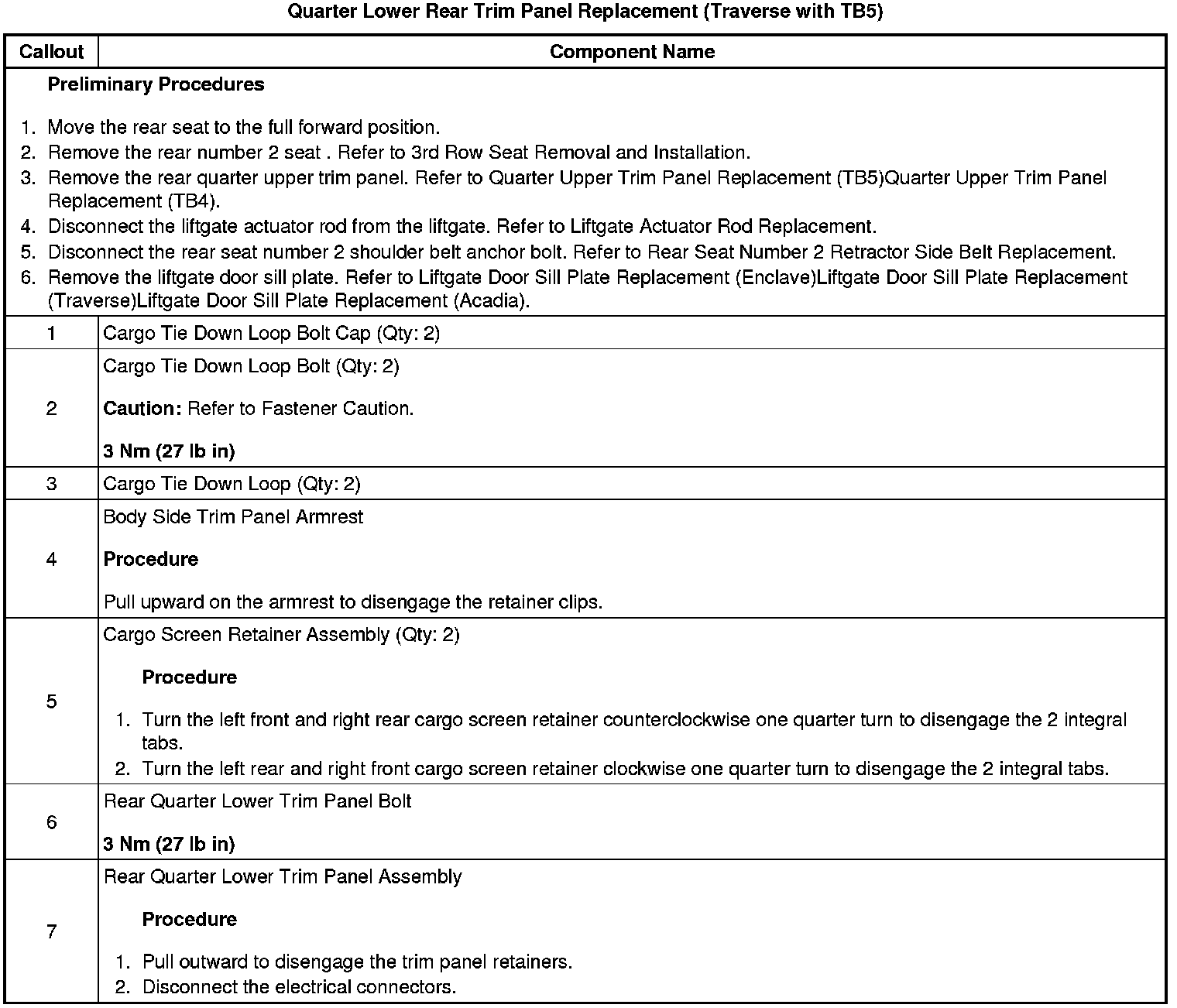 Quarter Lower Rear Trim Panel Replacement (With TB5)