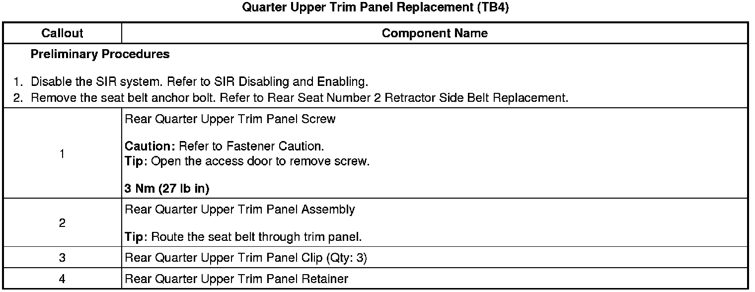 Quarter Upper Trim Panel Replacement (TB4)