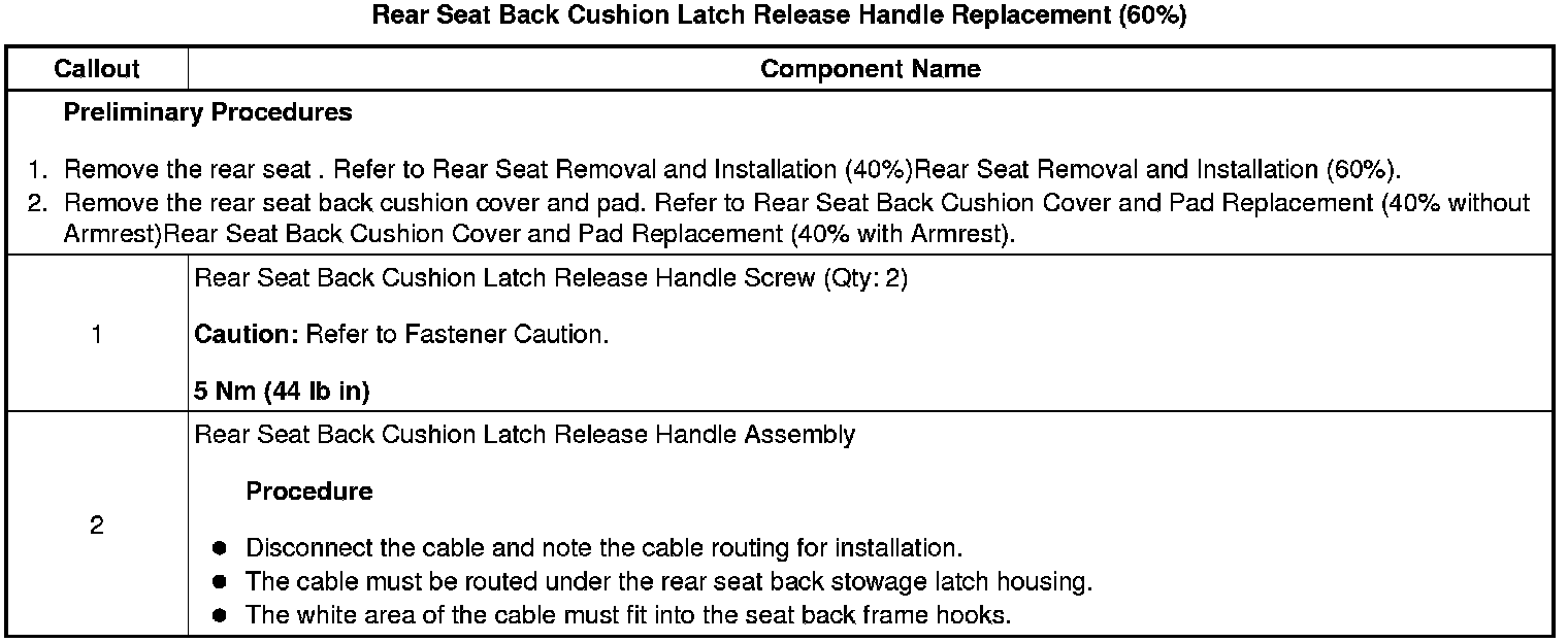 Rear Seat Back Cushion Latch Release Handle Replacement (60%)