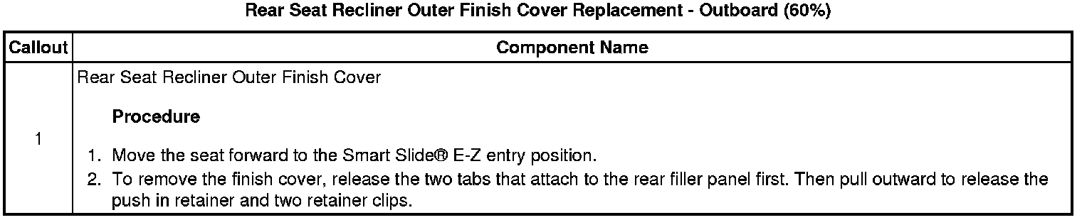 Rear Seat Recliner Outer Finish Cover Replacement - Outboard (60%)