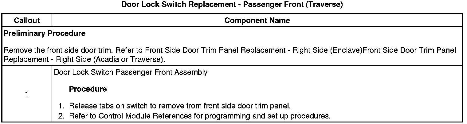 Door Lock Switch Replacement - Passenger Front (Traverse)