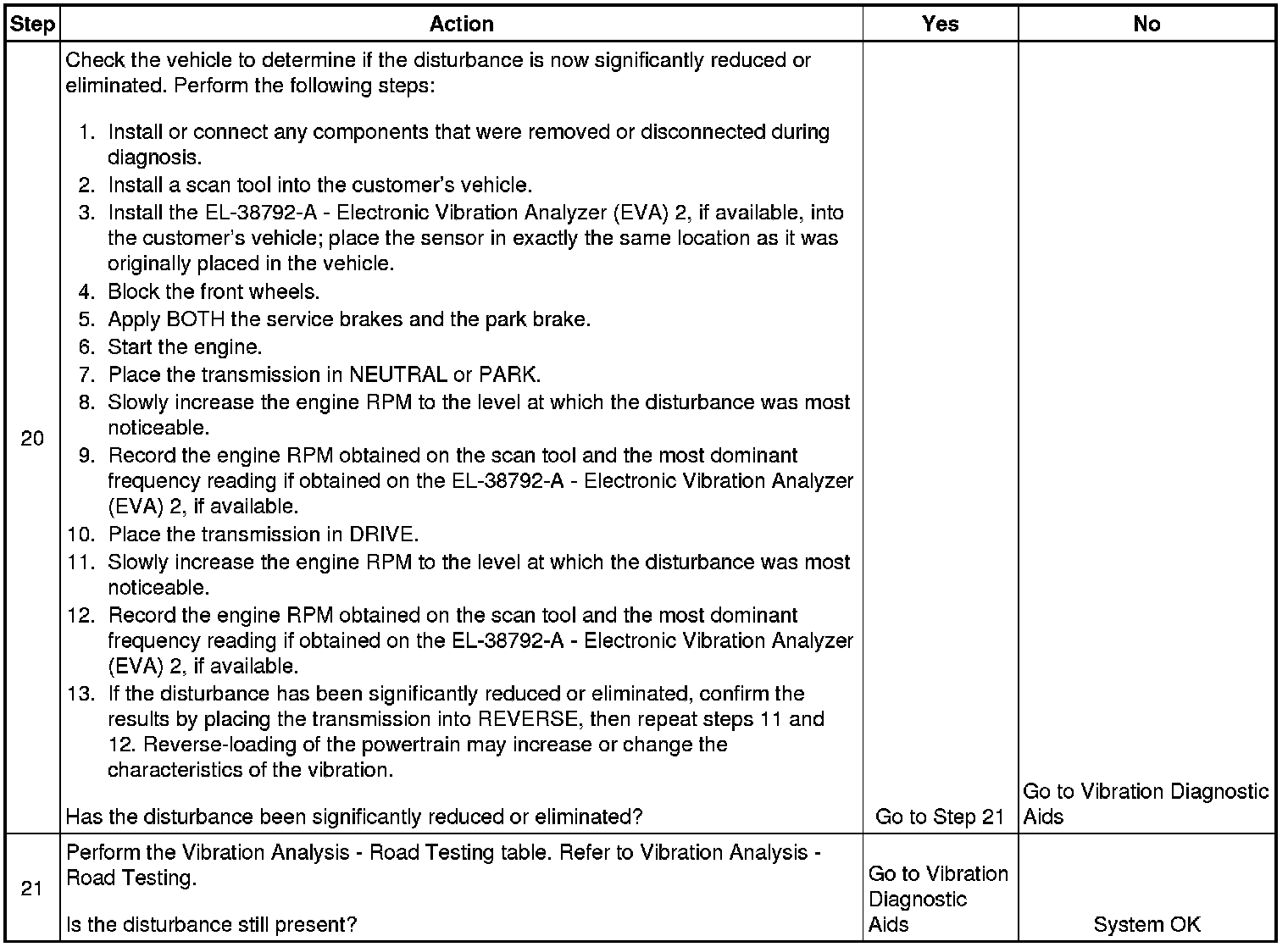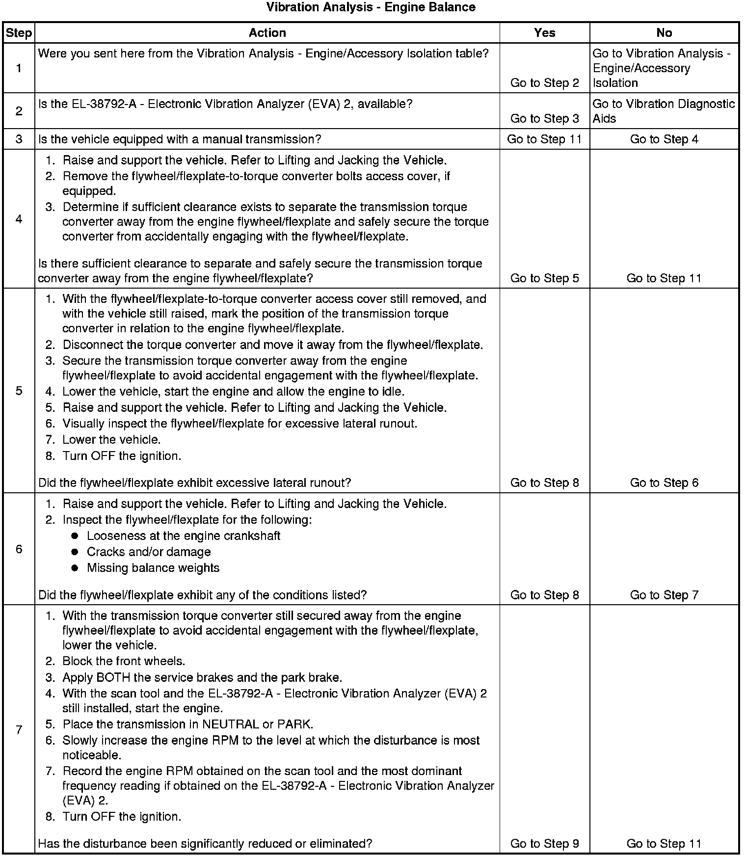 7. This step is designed to isolate the transmission from the engine to determine if the disturbance is related to the engine ONLY.