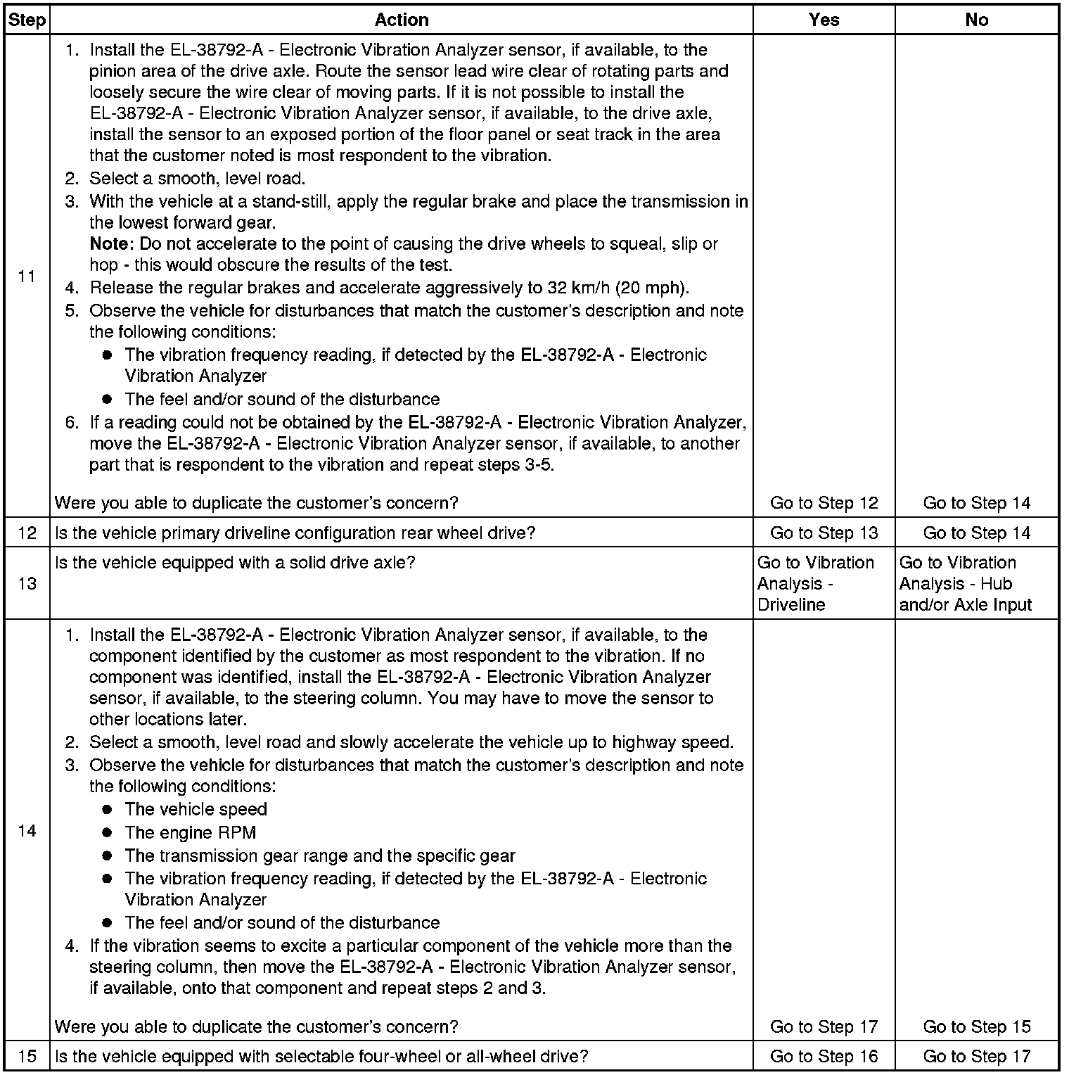 Obtaining rotational speed for the components rotating at tire/wheel speed is critical to systematically eliminating specific vehicle component groups. These component rotational speeds can be generated by using the EL-38792-VS - Vibrate Software, or through calculating them manually.