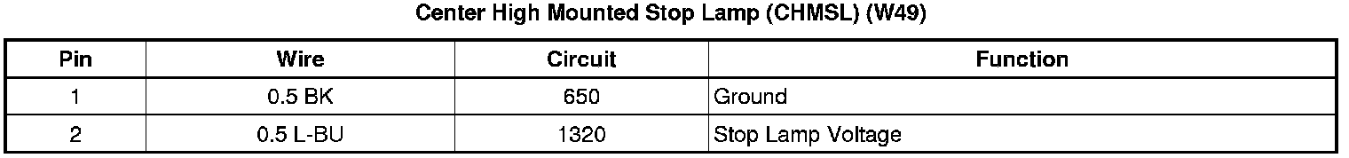 Center High Mounted Stop Lamp (CHMSL) (W49)
