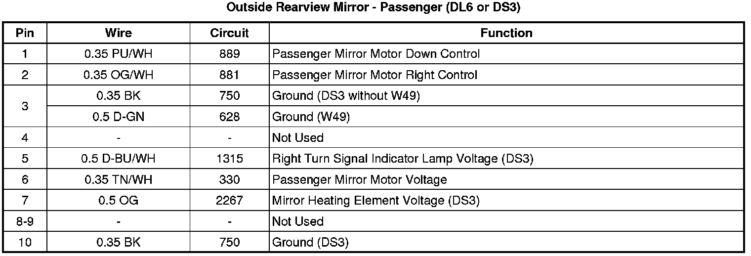 Outside Rearview Mirror - Passenger (DL6 or DS3)