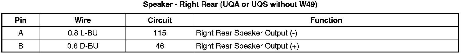 Speaker - Right Rear (UQA or UQS without W49)