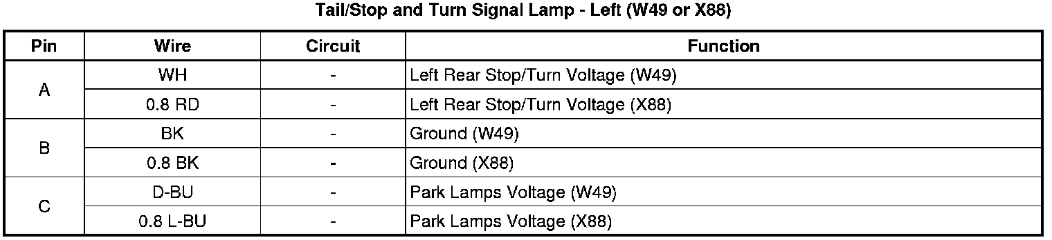 Tail/Stop and Turn Signal Lamp - Left (W49 or X88)