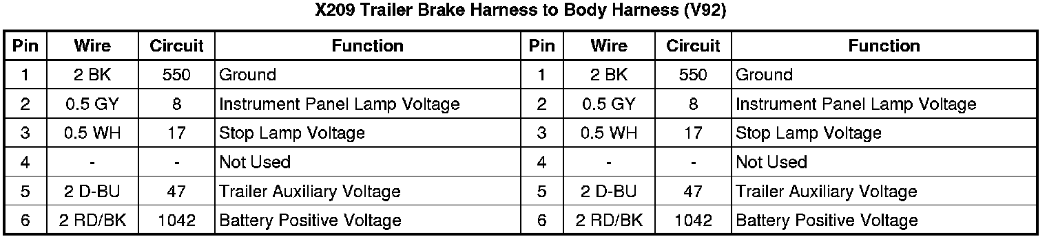 X209 Trailer Brake Harness to Body Harness (V92)