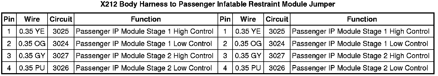 X212 Body Harness to Passenger Inflatable Restraint Module Jumper