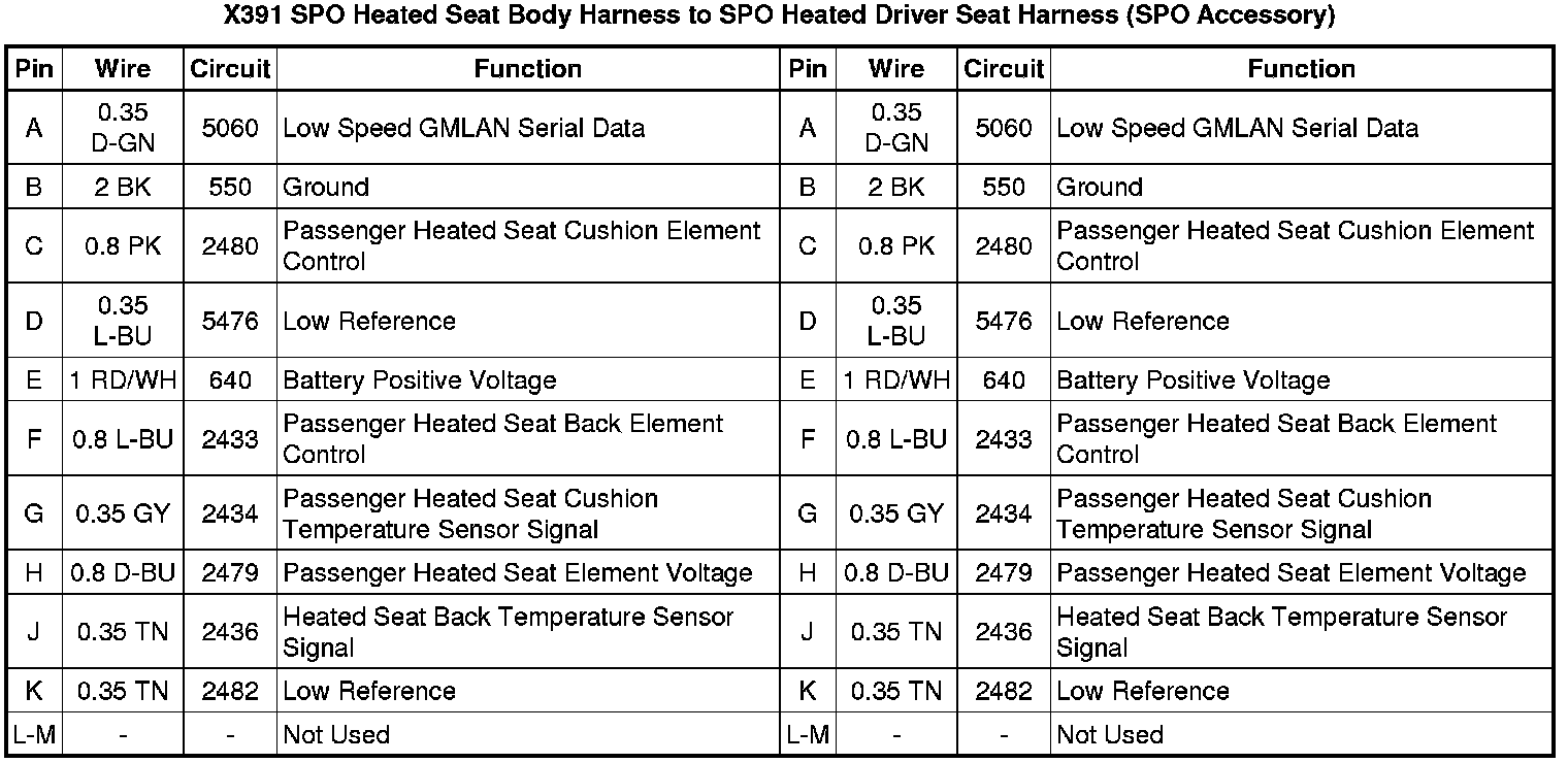 X391 SPO Heated Seat Body Harness to SPO Heated Driver Seat Harness (SPO Accessory)