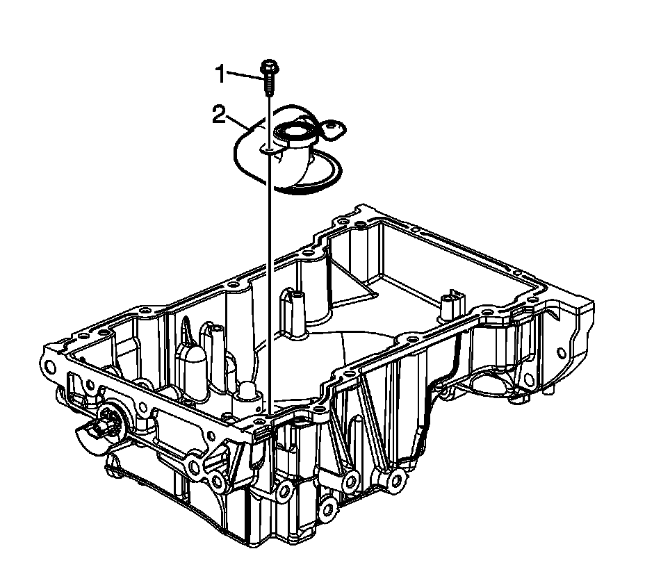 4. Install the engine oil level switch bolts (2) and tighten to 10 Nm (89 lb in).