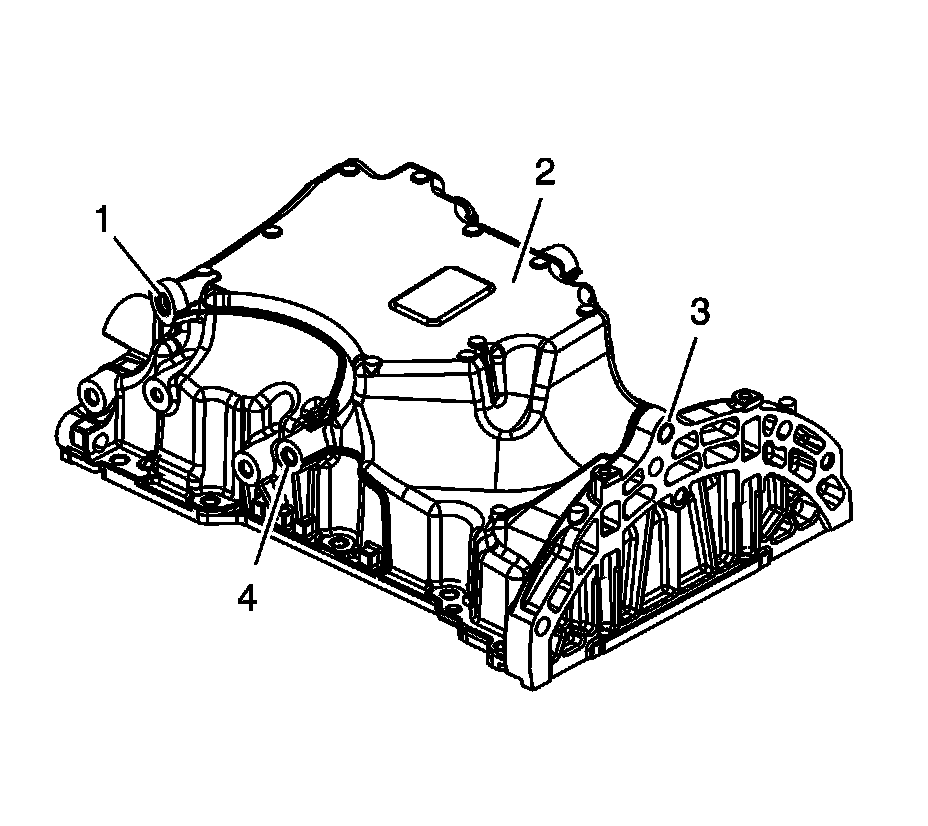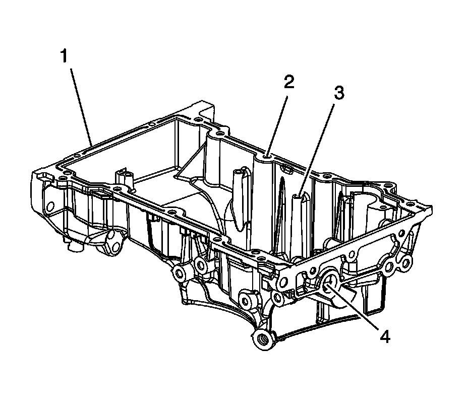 * Gouges or damage to the oil pan sealing surfaces (1)