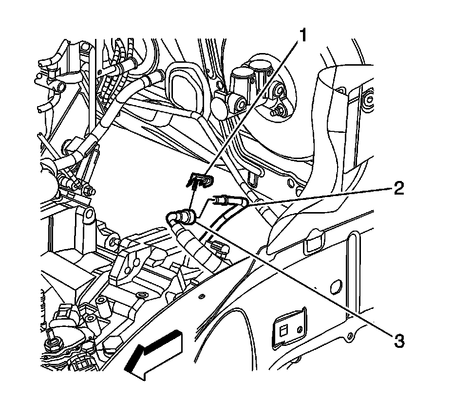 45. Connect the EVAP hose/pipe (3) to the EVAP canister purge solenoid valve. Refer to Plastic Collar Quick Connect Fitting Service Service and Repair.