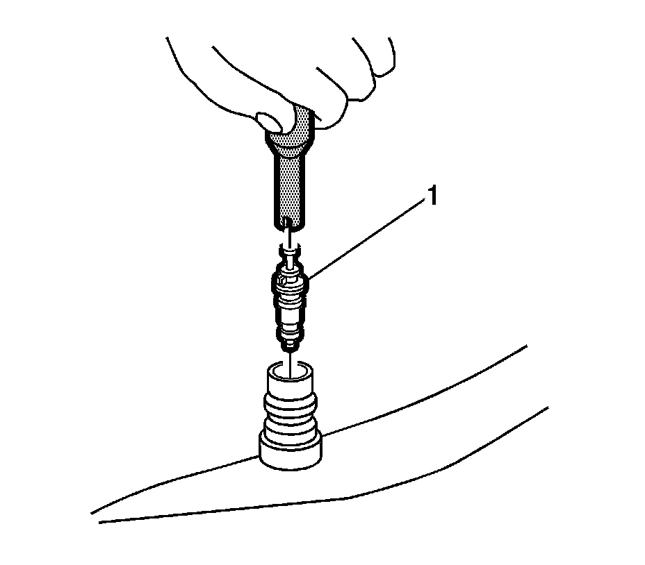 2. Using the GE 46246 - Valve Core Tool, remove the valve core (1) from the service port.