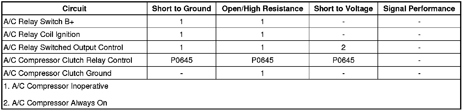 If the clutch does not engage refer to Air Conditioning (A/C) System Performance Test Air Conditioning (A/C) System Performance Test