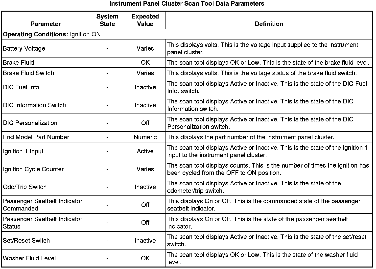 Instrument Cluster Scan Tool Information