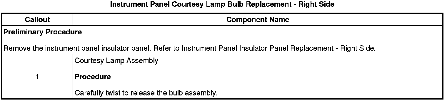 Instrument Panel Courtesy Lamp Bulb Replacement - Right Side